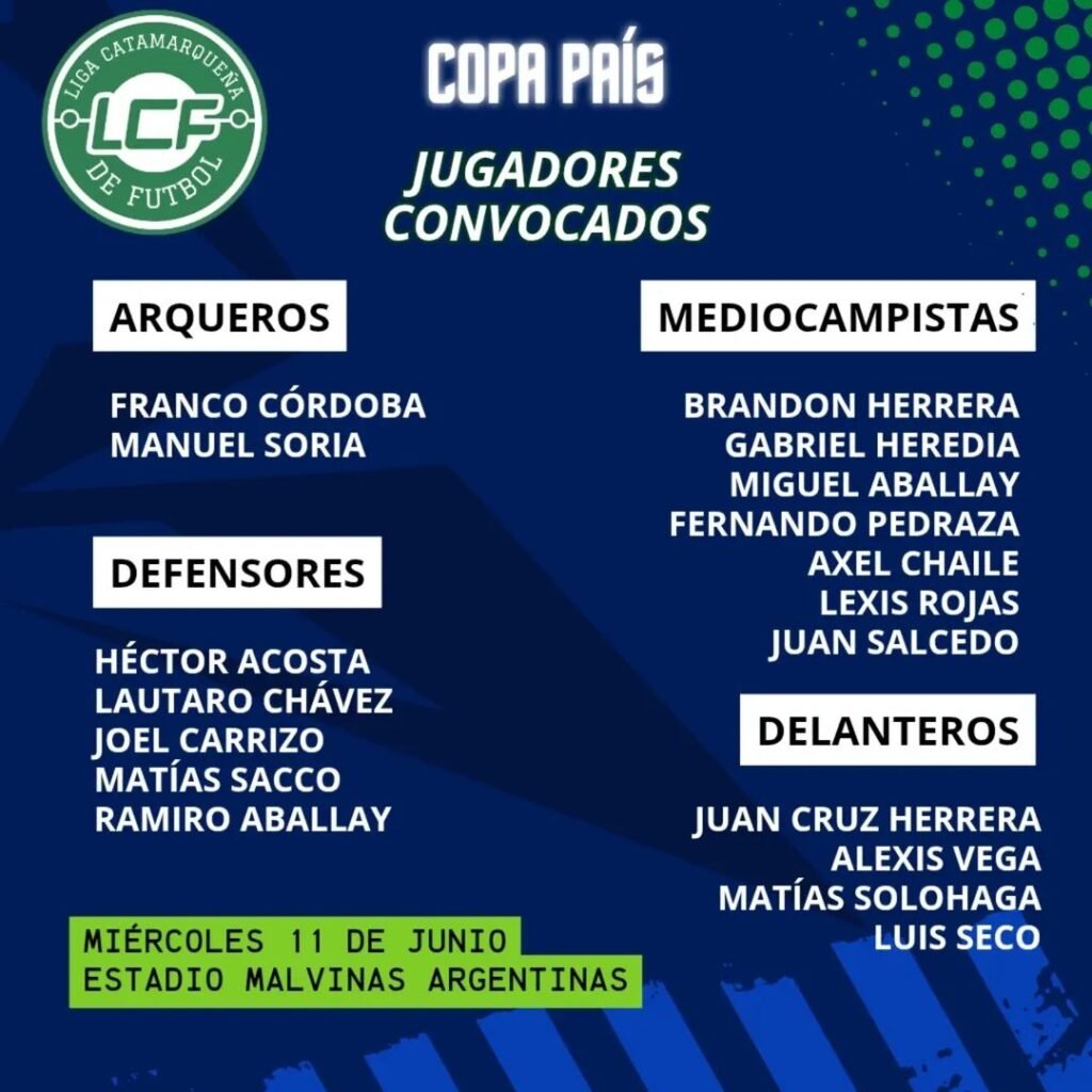Este miércoles, a partir de las 16.00 horas, en el estadio «Malvinas Argentinas», la Liga Catamarqueña recibirá a la Liga Belenista en el marco de la segunda fecha de la zona 2 de la Región Centro de la Copa País 2025, organizada por el Consejo Federal de AFA.