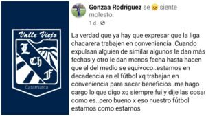 En las últimas horas, salió un descargo del entrenador de Los Sureños, Gonzalo Rodríguez, que apuntó directamente a la Liga...