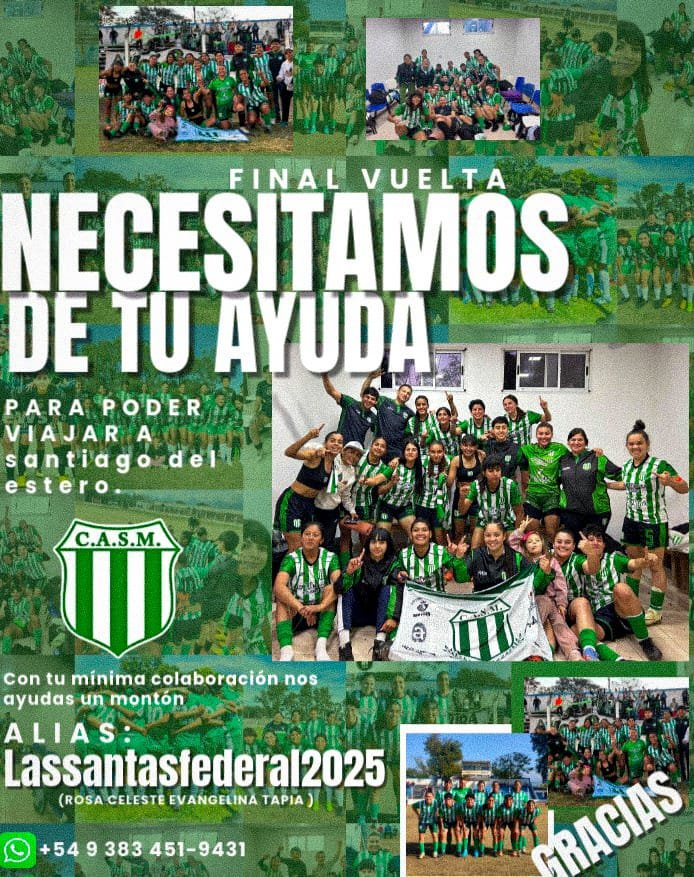 San Martín de El Bañado está ante una posibilidad histórica de representar de la mejor manera y poner en los primeros planos al fútbol femenino no solo de Las Chacras sino de la provincia. A pesar de eso, las chicas comienzan con la procesión de pedir ayuda para poder a viajar.