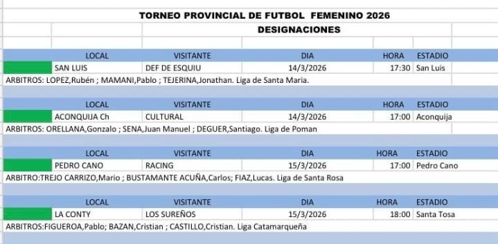 La acción continuará el domingo 15 de marzo con dos encuentros. En Recreo, Pedro Cano será anfitrión de Racing de Fiambalá desde las 17 horas. En el primer partido, el conjunto fiambalense se quedó con el triunfo 2 a 0, por lo que intentará sostener la ventaja para asegurar su clasificación, mientras que las recreínas estarán obligadas a revertir el marcador.