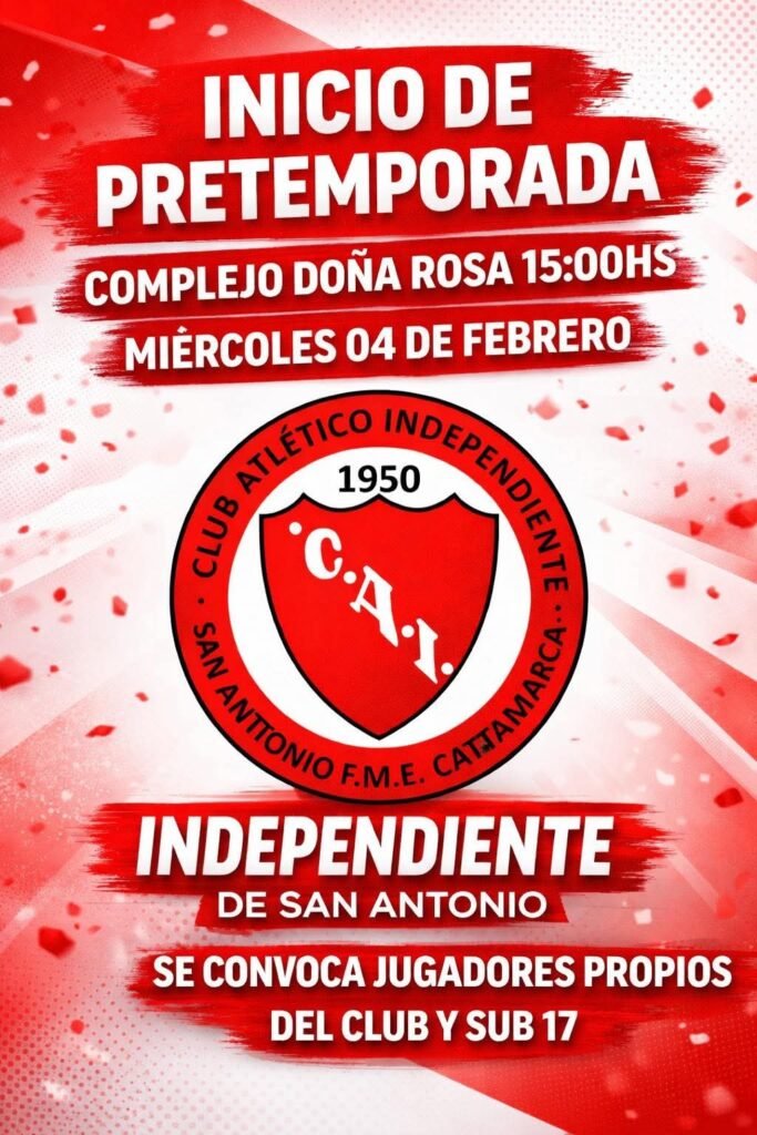 La convocatoria está destinada a jugadores propios del club y futbolistas de la categoría Sub 17, quienes comenzaron los trabajos preparatorios con el objetivo de llegar en óptimas condiciones al inicio de la competencia oficial. Las actividades se desarrollan en las instalaciones del Complejo Doña Rosa, escenario habitual de los entrenamientos del “Rojo” sanantoniano.