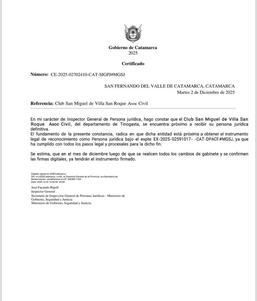 La medida fue justificada bajo el argumento de una supuesta falta de personería jurídica, situación que desde el Club San Miguel de Villa San Roque se desmiente categóricamente. Desde la institución afirman que cuentan con la documentación correspondiente en regla, se encuentra avalada para competir, y ha sido habilitada durante toda la temporada, incluso para disputar instancias decisivas del torneo local y eventuales competencias provinciales.