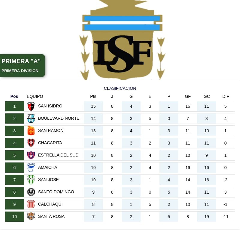 El pasado fin de semana se jugaron los encuentros correspondientes a la octava fecha en la divisional A y B del Torneo Apertura en la Liga Santamariana.