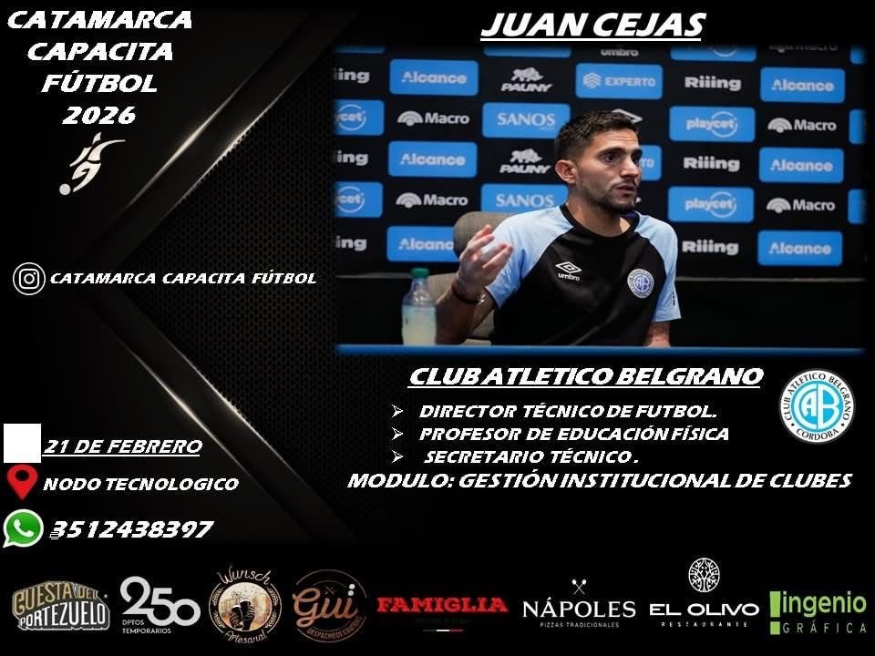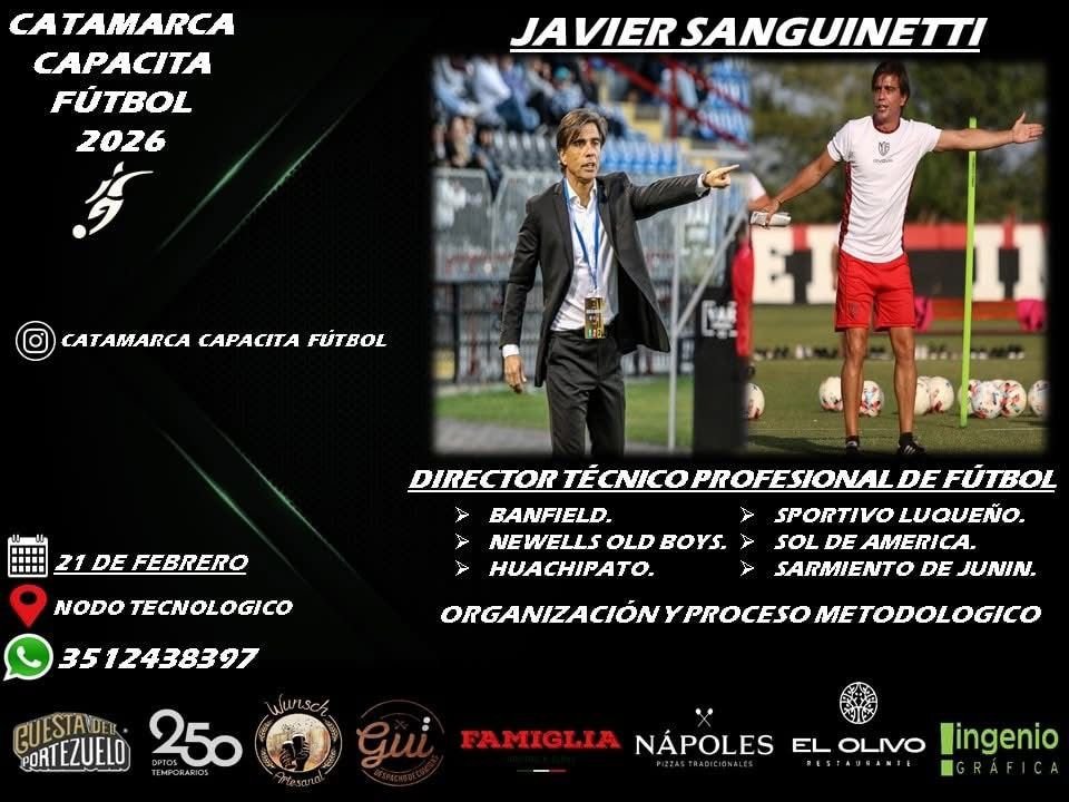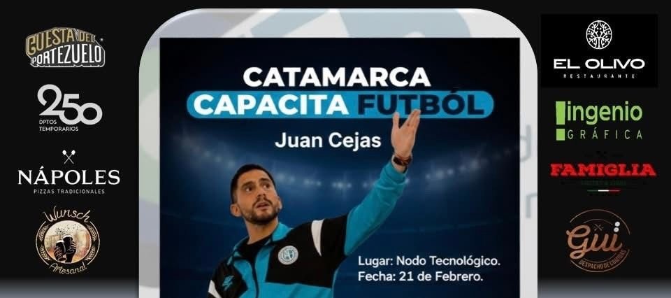 El próximo 21 de febrero, Catamarca será sede de una capacitación única bajo el lema “Catamarca Capacita Fútbol”, que se desarrollará en el Nodo Tecnológico y estará destinada a entrenadores, dirigentes, estudiantes y a todos los interesados en conocer cómo se trabaja en el fútbol moderno.