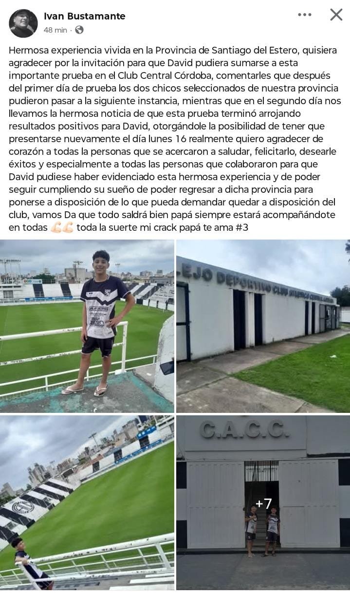 El posteo que subió Iván Bustamante (papá del jugador) a sus redes sociales, orgulloso de su hijo David.