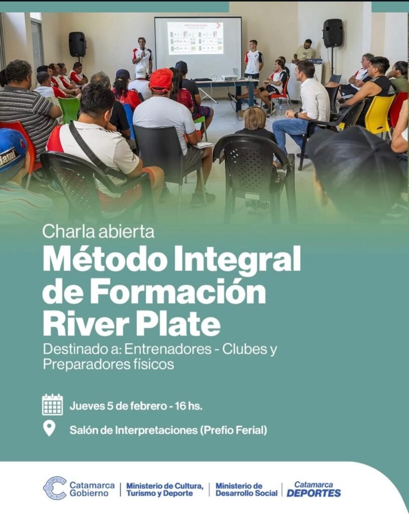 El Club Atlético River Plate ofrecerá una charla abierta y gratuita sobre su reconocido Método Integral de Formación Deportiva, destinada a entrenadores, docentes, estudiantes y público en general interesado en el desarrollo integral de jóvenes deportistas.