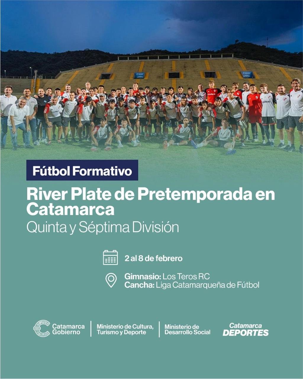 Como viene siendo habitual en los últimos años, el Club Atlético River Plate vuelve a elegir a la provincia de Catamarca como sede para la pretemporada de sus divisiones formativas de fútbol. En esta oportunidad, serán las categorías Quinta y Séptima División las que arribarán a la provincia desde este lunes 2 hasta el domingo 8 de febrero.