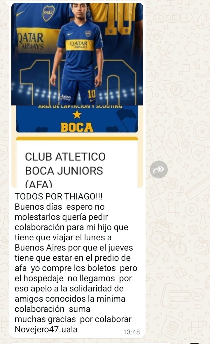 Por este motivo, apelan a la solidaridad de la comunidad, entendiendo que cada ayuda, por mínima que sea, suma para que Thiago pueda presentarse en óptimas condiciones y cumplir su sueño de seguir creciendo en el fútbol argentino.