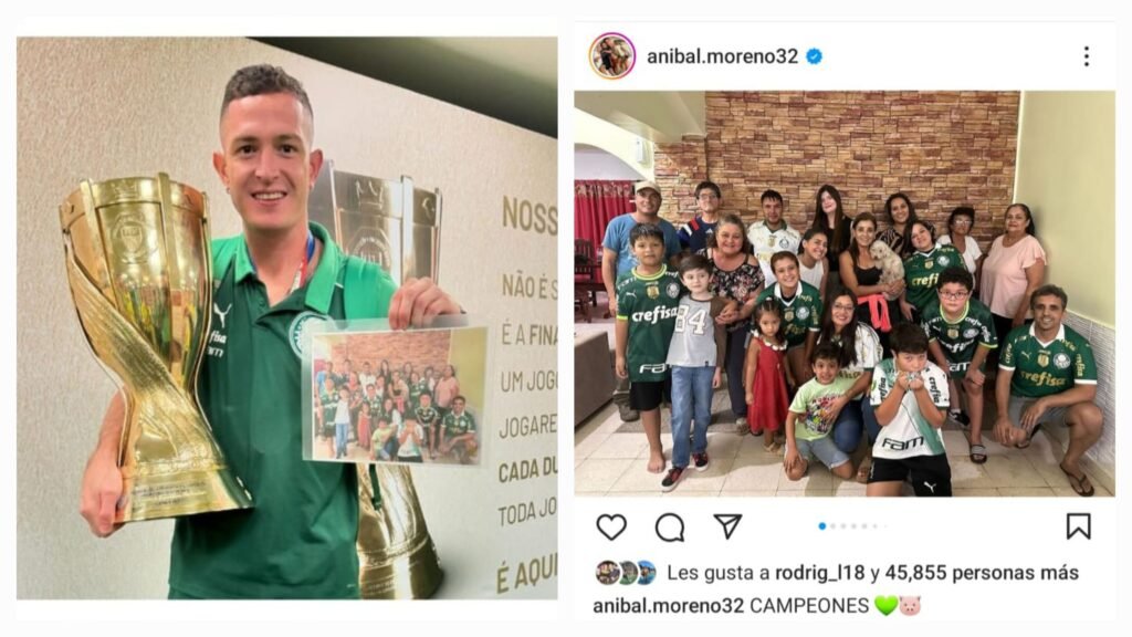 A través de sus redes sociales, el catamarqueño compartió una foto de él en la zona de vestuarios acompañado por el trofeo y una imagen de su familia reunida para brindarle apoyo, todos ya luciendo el tradicional verde de la casaca del Palmeiras. A estas alturas, la familia del «Colo» ya integra la «torcida del Porco», como se conoce a los hinchas del «Verdao».