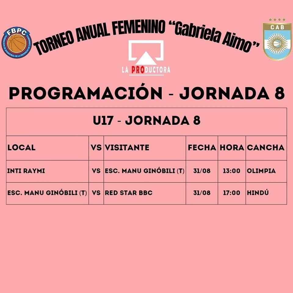Este sábado, con dos encuentros de la División Formativa U17, se disputará la jornada 8 del Torneo Anual Femenino «Gabriela Aimo» 2024, organizado por la Federación de Básquetbol de la Provincia de Catamarca.