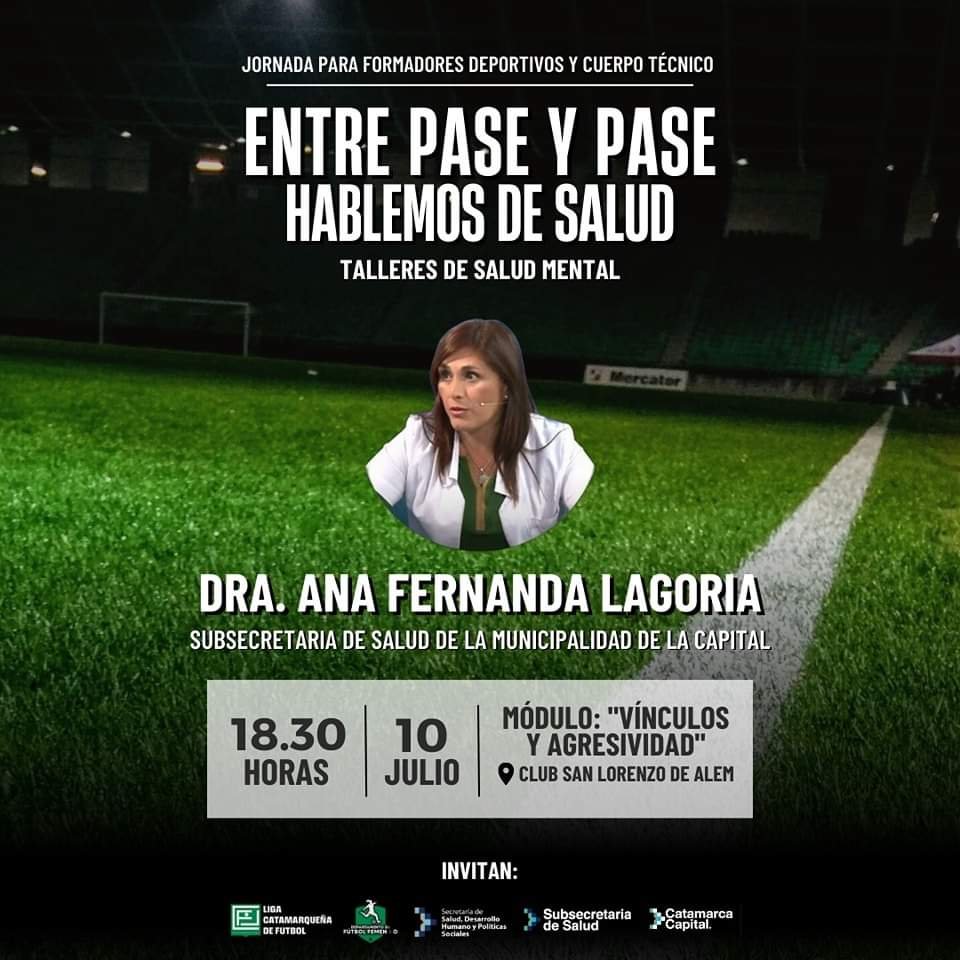 El Departamento de Fútbol Femenino de la Liga Catamarqueña de Fútbol, en colaboración con la Sub Secretaría de Salud de Catamarca Capital, concluirá con su primera jornada del programa “ENTRE PASE Y PASE, HABLEMOS DE SALUD”, talleres destinados a fomentar el cuidado de la salud mental.