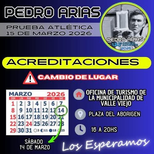 Según se informó oficialmente, el registro de los competidores ya no se realizará en el sitio previsto inicialmente. Con el propósito de optimizar la atención y brindar mayor comodidad a los participantes, se resolvió trasladar el punto de acreditación a la Oficina de Turismo de la Municipalidad de Valle Viejo, ubicada en la Plaza del Aborigen.