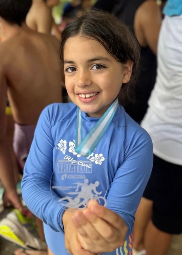 Entre ellos, uno de los casos más llamativos fue el de Mercedes Peukert Agüero, de apenas 10 años, quien dio un paso importante en su crecimiento deportivo al debutar en la exigente distancia de súper sprint. Luego de un verano compitiendo en categorías infantiles, la joven decidió desafiarse y medirse con competidores de mayor edad, mostrando una adaptación notable.