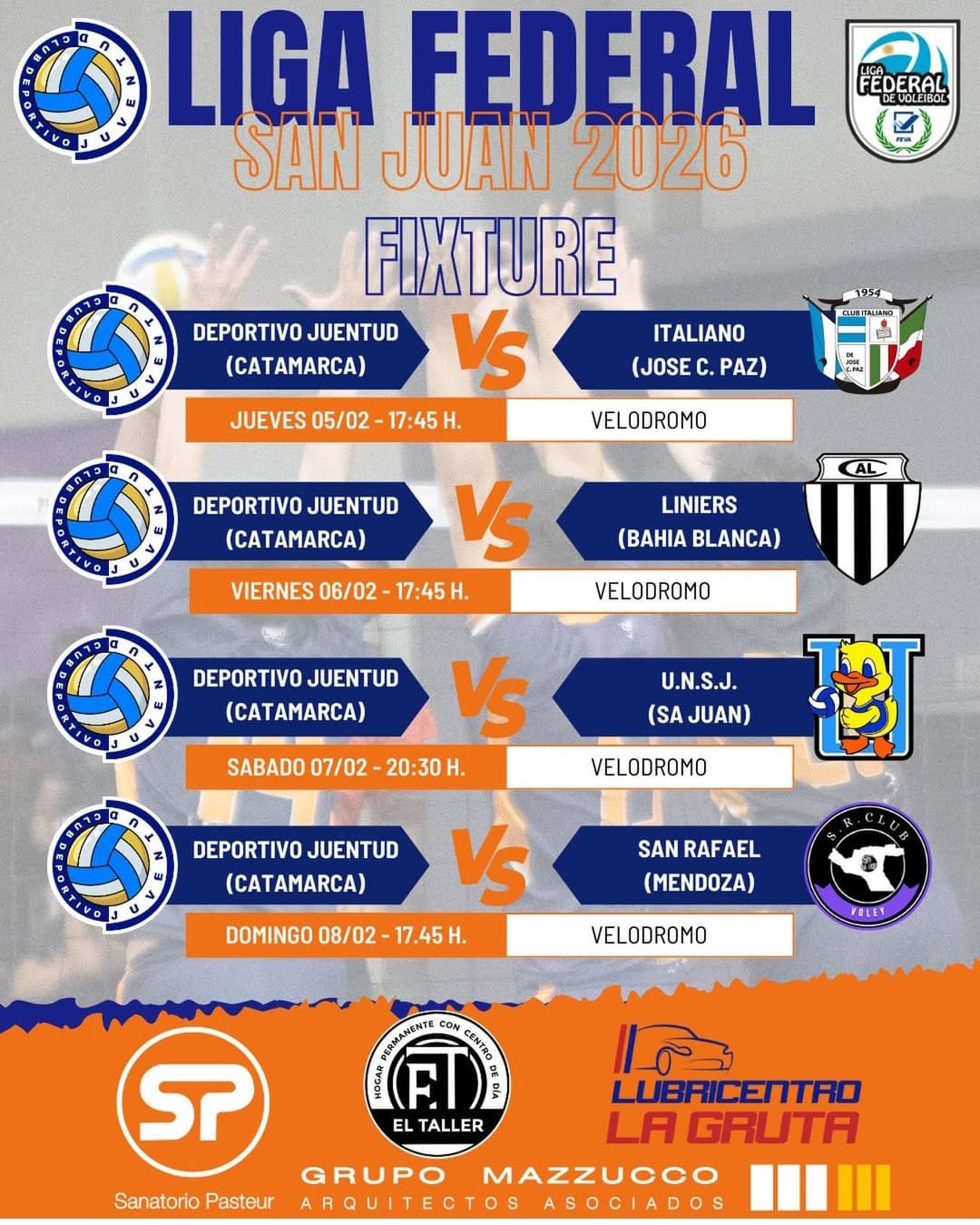 El jueves 5 de febrero, a las 17:45 horas, Juventud debutará ante el Italiano de José C. Paz en el primer encuentro de la temporada. Al día siguiente, viernes 6, el equipo volverá a saltar a la cancha a la misma hora para medirse con Liniers de Bahía Blanca. El sábado 7, a las 20:30 horas, se enfrentarán a U.N.S.J. (San Juan), y cerrarán la serie el domingo 8 de febrero, nuevamente a las 17:45, contra San Rafael de Mendoza.