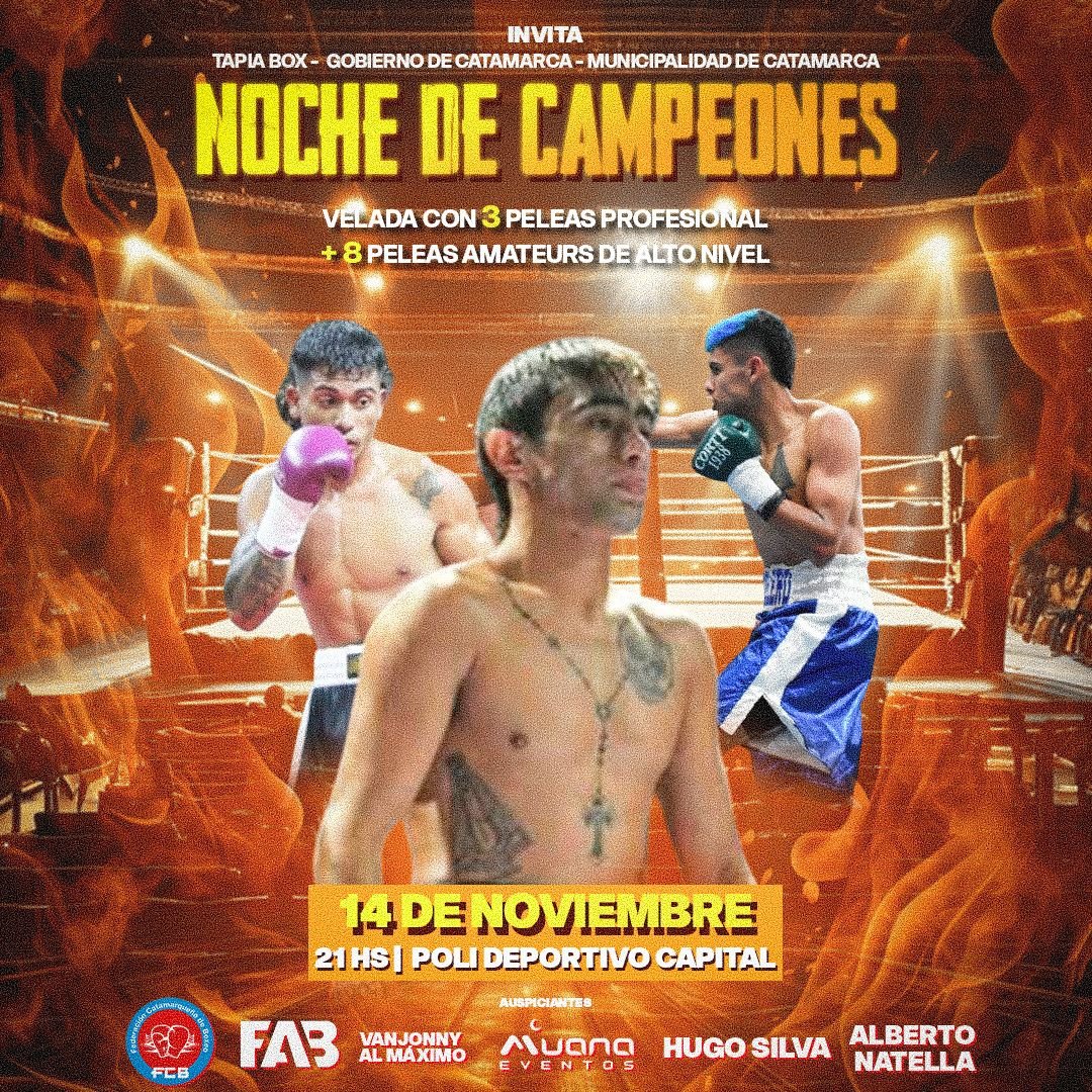 El próximo 14 de noviembre a las 21 horas, el Polideportivo Capital será escenario de una gran velada boxística denominada “Noche de Campeones”, organizada por Tapia Box, con el acompañamiento del Gobierno de Catamarca y la Municipalidad de la Capital.