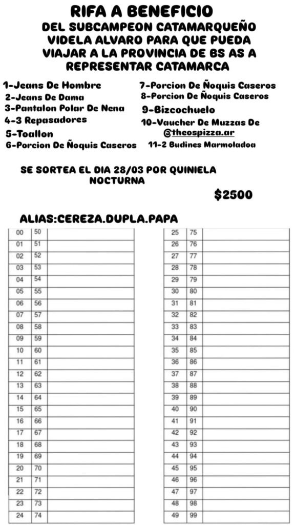 Quienes deseen colaborar no solo estarán participando por premios, sino también formando parte de un proyecto que apuesta al crecimiento de un joven deportista que representa con orgullo a Catamarca.