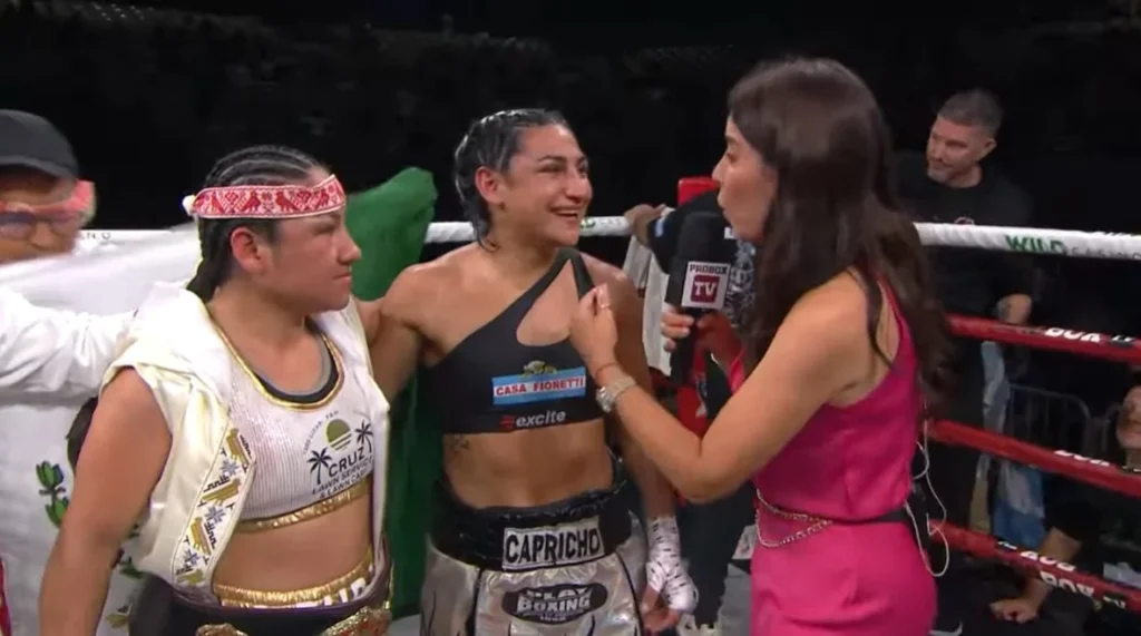 Y dijo: «Yo fui regalada allá, fui de visitante y sabía que eso iba a pasar, tenia que noquearla para ganar. Hicieron de todo para desconcentrarme, sentí que había hecho las cosas bien. Hay muchas cosas que suman, yo tenia la nariz lastimada e iba mucho para delante».