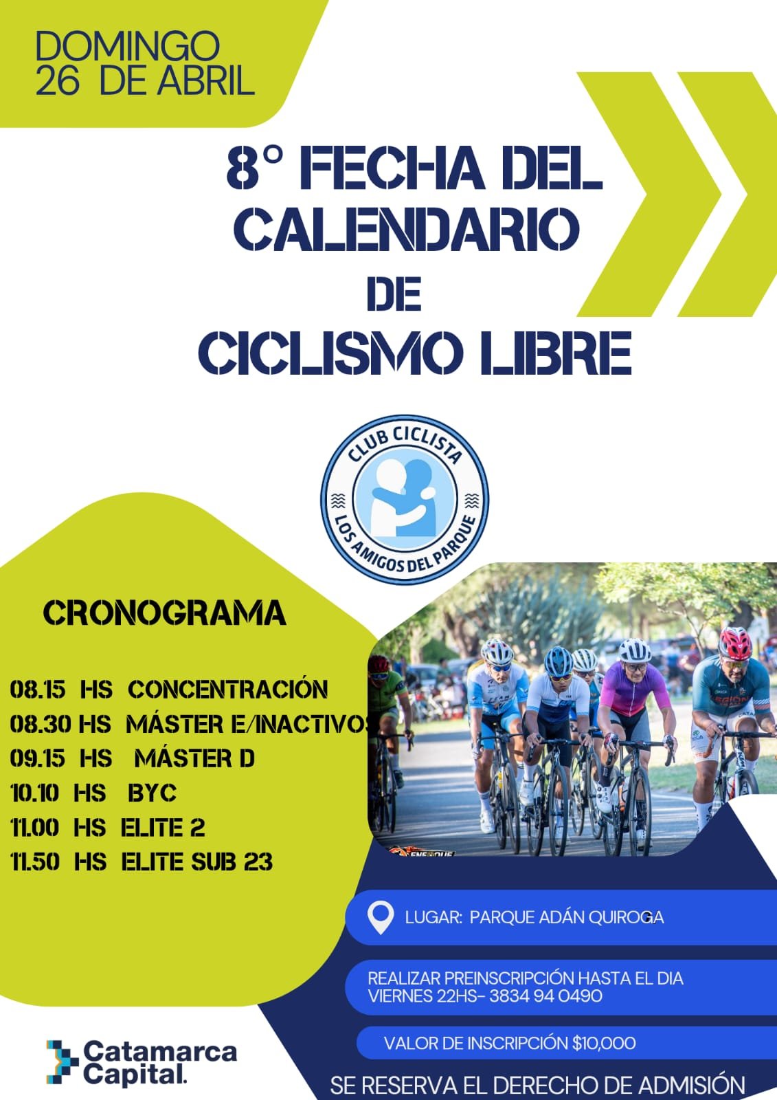 Este domingo 26 de abril se llevará a cabo la 8° fecha del calendario de ciclismo libre organizada por el Club Ciclista Los Amigos del Parque, en el Parque Adán Quiroga, uno de los espacios deportivos más tradicionales de la San Fernando del Valle de Catamarca.