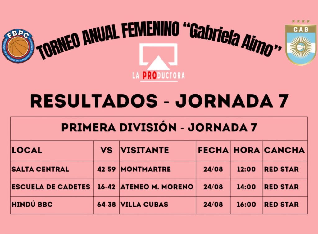 En la cancha de Red Star BBC, se disputó la Jornada 7 del Torneo Anual 224 «Gabriela Aimo» de Básquet Femenino del Federación de Básquetbol de la Provincia de Catamarca, con tres partidos de Primera División.