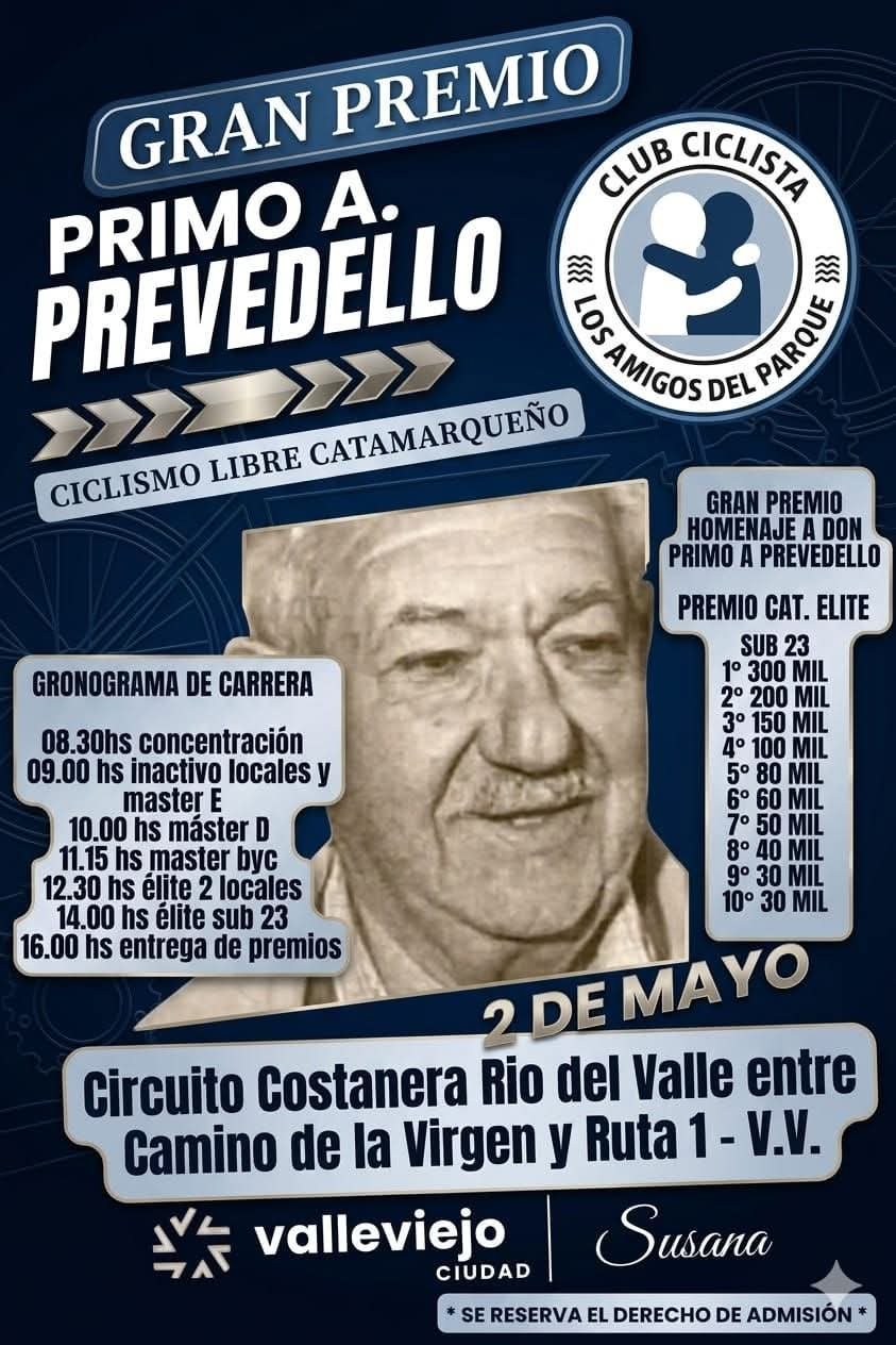El Gran Premio no solo representa una competencia deportiva, sino también un homenaje a Primo Antonio Prevedello, figura ligada al ciclismo local, en una jornada que promete combinar deporte, tradición y un gran marco de público en las calles catamarqueñas.