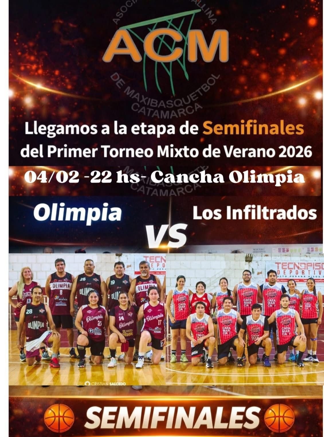El Torneo Mixto de Verano organizado por la Asociación Capitalina de Maxibásquet (ACM) entra en su etapa decisiva. Este miércoles 4 de febrero, el estadio “Juan Carlos ‘Puyuyo’ Sánchez” del Club Atlético Olimpia será el escenario de las semifinales, con dos partidos que prometen intensidad y gran marco de público.