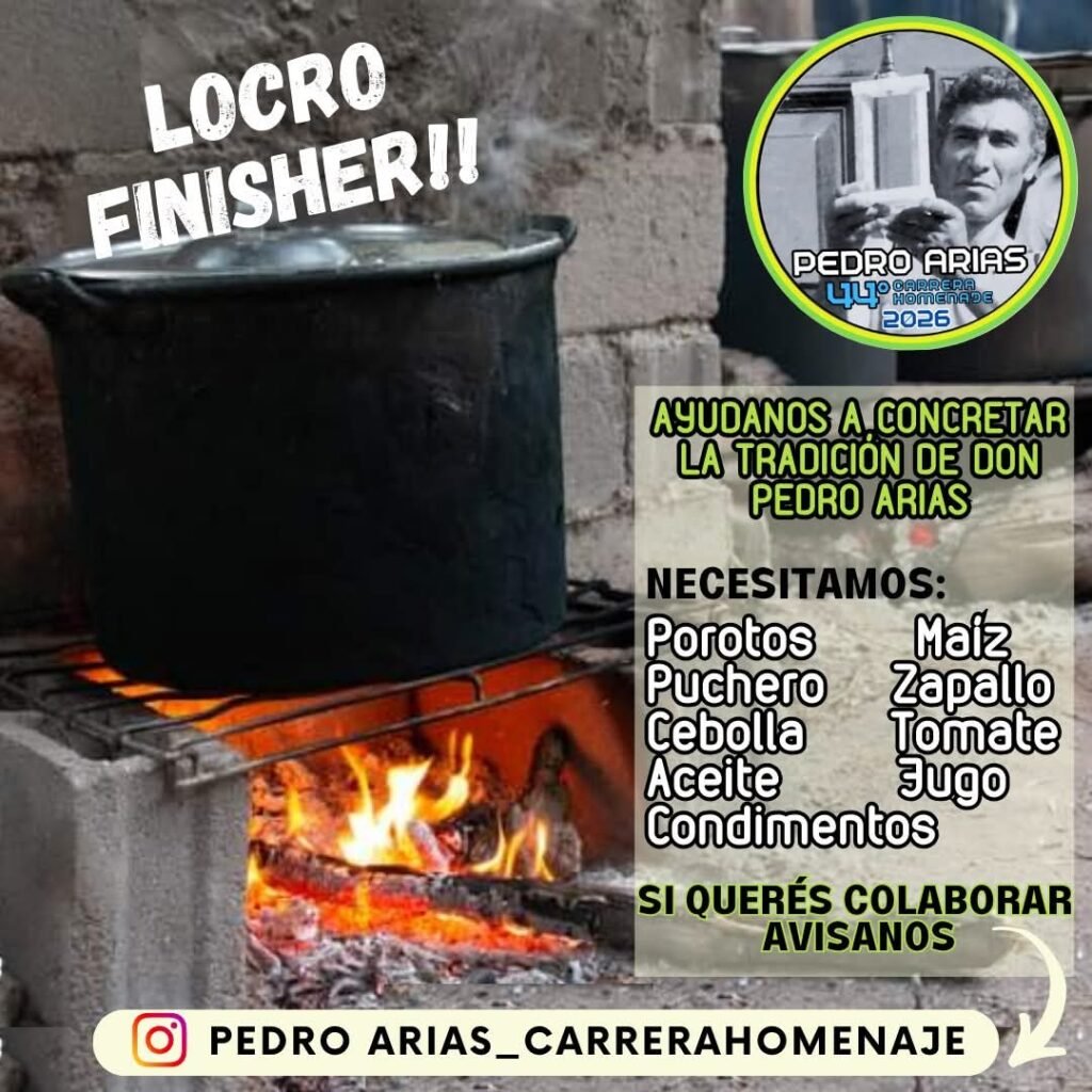 En el marco de la 44° edición de la Carrera Homenaje a Pedro Arias, la organización lanzó una convocatoria solidaria destinada a garantizar la realización de uno de los rituales más emblemáticos del evento: el tradicional “Locro Finisher”.