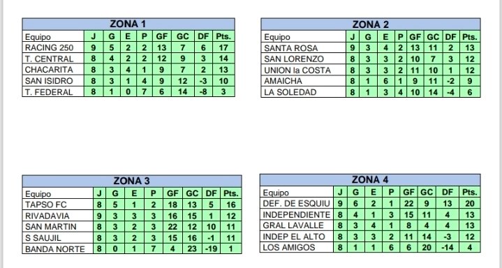 Asi se encuentran las tablas de posiciones de todas las zonas antes del inicio de esta jornada decisiva: