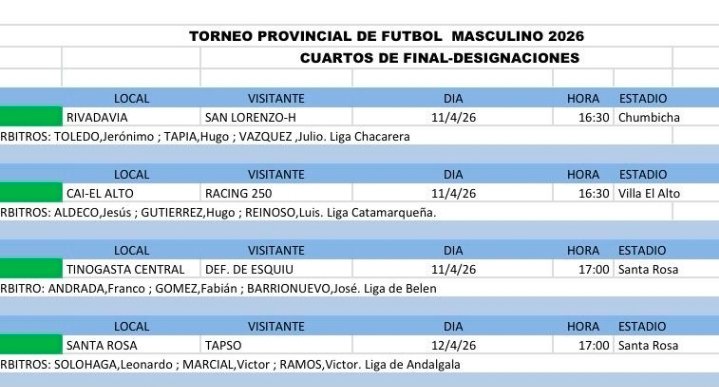 Este fin de semana que viene se jugarán los primeros choques de cuartos de final del Torneo Provincial masculino con días y horarios confirmados. Se disputarán tres encuentros el sábado y uno el domingo.