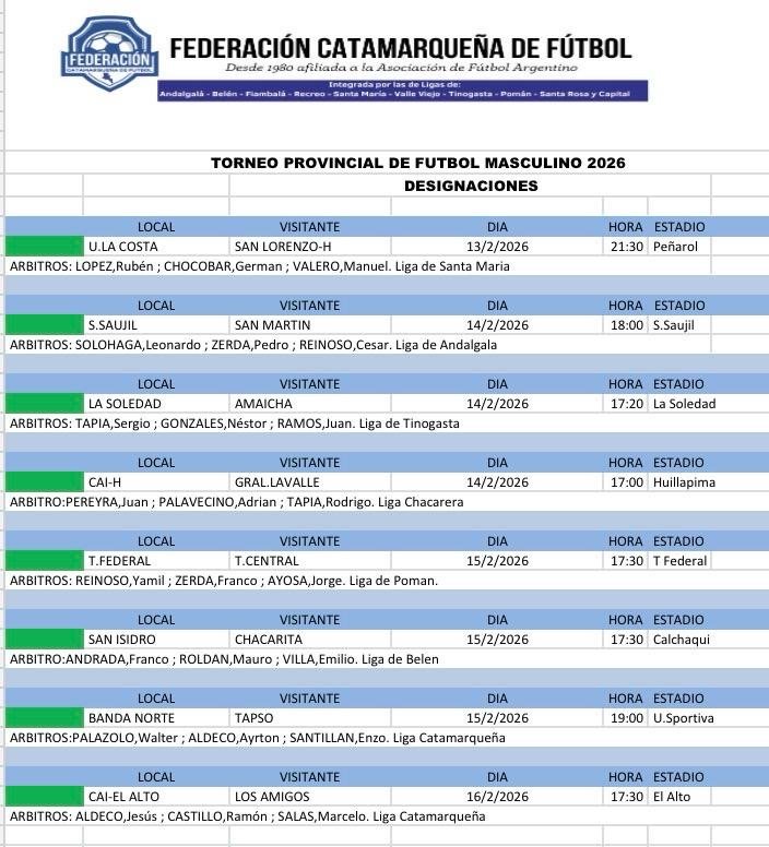 El sábado 14 ofrecerá una agenda cargada. En Saujil, Sportivo recibirá a San Martín de El Bañado a partir de las 18:00, bajo la conducción arbitral de Leonardo Solohaga, junto a Pedro Zerda y César Reinoso (Liga de Andalgalá). Se trata de un partido que puede marcar tendencia dentro de la zona, especialmente por el presente en alza del conjunto visitante.
